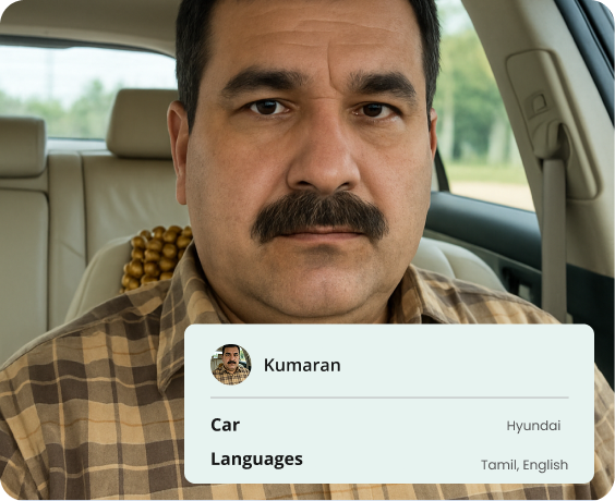 “Landing in Chennai late at night, I was worried about getting to my hotel. But the driver was already waiting at arrivals with a clear sign, helped me with my luggage, and drove me safely to the hotel.”